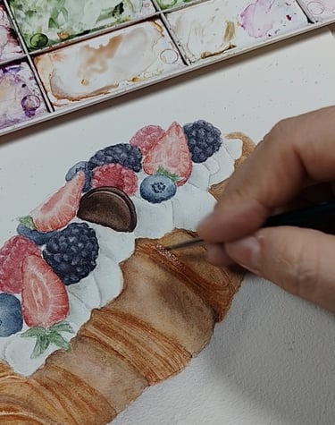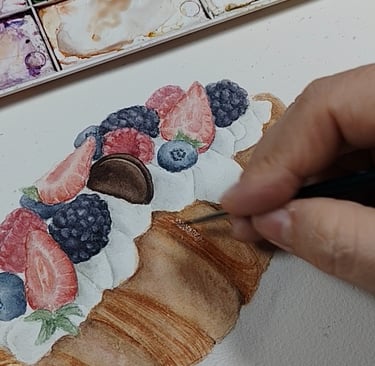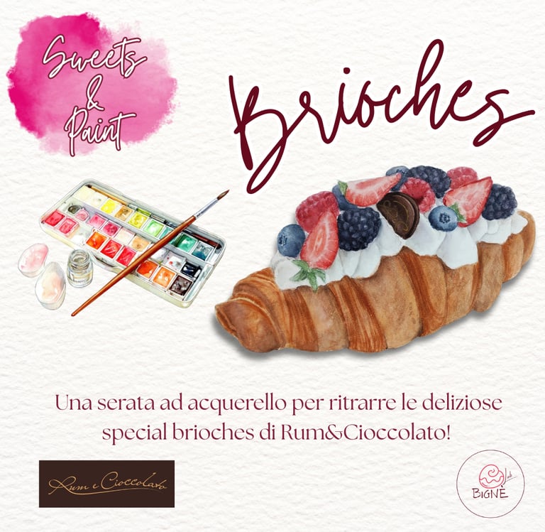 Guidati passo dopo passo, dipingeremo ad acquerello le “Special Brioches” di Rum & Cioccolato, soffici e coloratissime creazioni che sembrano nate per essere ritratte.