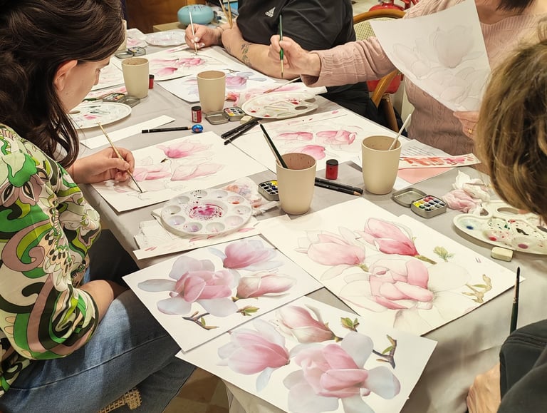 Il workshop artistico è pensato per guidarti passo dopo passo nella creazione del tuo dipinto, partendo dal foglio bianco fino alla delicatezza del colore.